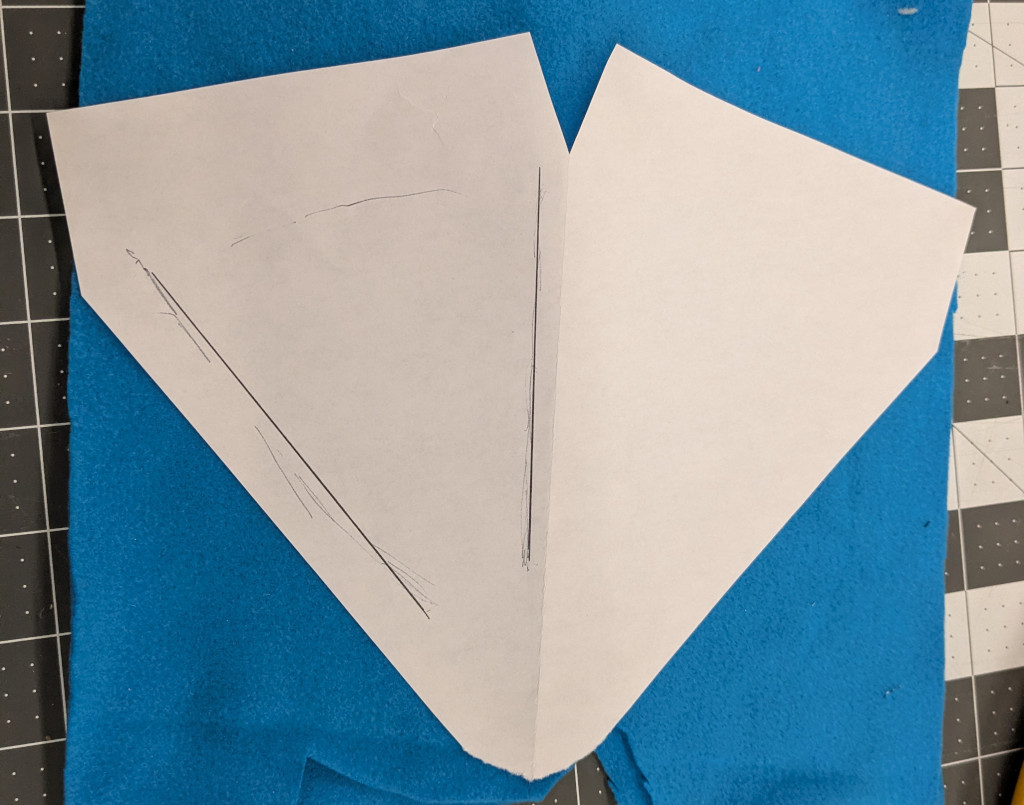![[a hand-drawn paper pattern for an ear-warmer that fits over bike helmet straps, laid out on top of a piece of blue fleece cloth]](https://shallowsky.com/blog/images/sewing/helmetcover/PXL_20260116_222948114T.jpg)