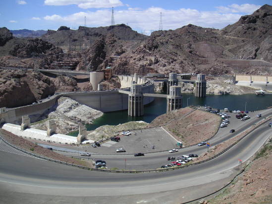 But if you take the bypass, you'd miss this spectacular view of Hoover Dam itself. The water level in Lake Mead is really low here.Next: Las Vegas.